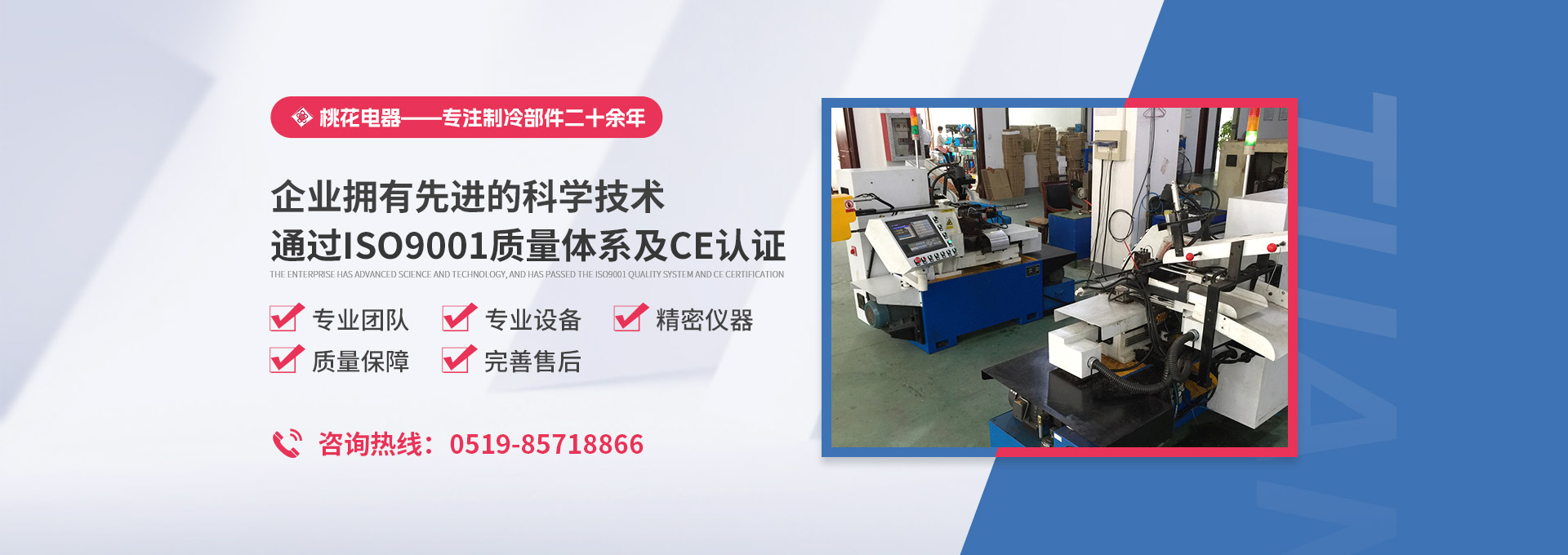 常州桃花電器有限公司地處中國(guó)長(zhǎng)江“金三角”之稱的上海至南京高速公路、城際高鐵、常州高新經(jīng)濟(jì)技術(shù)開(kāi)發(fā)區(qū)路段,交通便利、技術(shù)力量十分雄厚。它是集研究、開(kāi)發(fā)設(shè)計(jì)、制造和經(jīng)營(yíng)制冷核心部件的企業(yè),主要生產(chǎn)中央空調(diào)上使用的制冷部件。產(chǎn)品有膜片式單向閥、鋼球式單向閥、四氟式單向閥、過(guò)濾器、消音器等系列。年生產(chǎn)制冷核心部件200萬(wàn)只,其性能達(dá)到國(guó)際同類產(chǎn)品水平。 企業(yè)擁有先進(jìn)的科學(xué)技術(shù)、國(guó)際先進(jìn)的生產(chǎn)加工設(shè)備和精密的檢測(cè)儀器,并已通過(guò)ISO9001質(zhì)量體系及CE認(rèn)證,公司歷史悠久,2000年起,經(jīng)過(guò)長(zhǎng)期積累、沉淀,經(jīng)驗(yàn)豐富,從而保證了產(chǎn)品的高質(zhì)量、高性能、高耐用性。企業(yè)產(chǎn)品在國(guó)內(nèi)外市場(chǎng)具有較高的知名度,深受眾多中外品牌制冷客商的好評(píng)。主要客戶有約克、麥克維爾、美的、開(kāi)利、特靈、頓漢布什、清華同方、天加等.并出口北美、歐洲、東南亞等地區(qū)。 高品質(zhì)產(chǎn)品是企業(yè)的保證,周到服務(wù)是合作友誼的承諾,企業(yè)本著“求